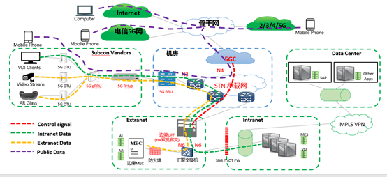 網(wǎng)側(cè):以室分+宏站實現(xiàn)產(chǎn)線覆蓋,并將UPF下沉至園區(qū),實現(xiàn)數(shù)據(jù)的本地處理,滿足安全要求的同時,降低業(yè)務(wù)時延。