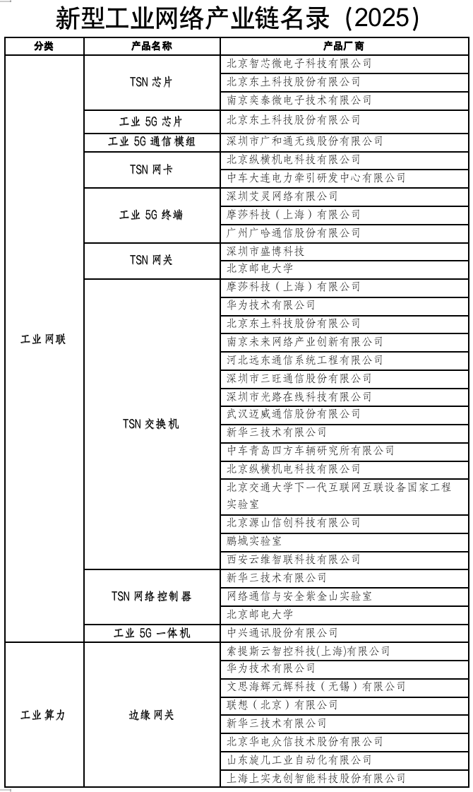 為全面落實“十五五”規劃部署的工業互聯網創新發展工程,加快新型工業網絡體系化發展,推動新型工業網絡技術產品創新,支撐工業和信息化部《工業互聯網和人工智能融合賦能行動方案》中“不少于50000家企業實施新型工業網絡改造升級”任務落地,在工業和信息化部信息通信管理局的指導下,工業互聯網產業聯盟全面梳理新型工業網絡產業鏈發展情況,以推進關鍵產品研發、商用為主線,匯聚產業創新產品,組織編寫了《新型工業網絡產業鏈名錄(2025)》(以下簡稱“名錄”),并于2025年9月25日北京召開的“新型工業網絡發展論壇暨2025工業互聯網網絡創新大會”上正式發布。